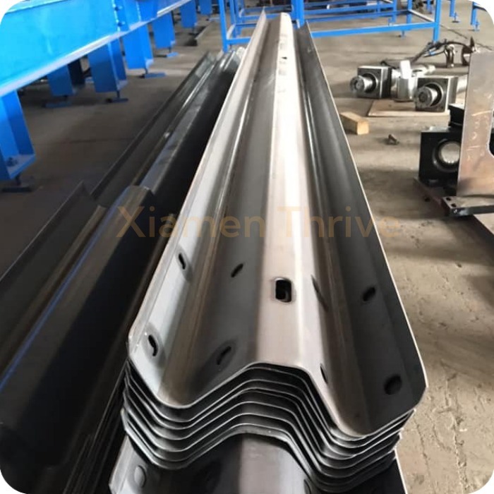 The entire Highway Guardrail Roll Forming Machine production line, includes the roll forming machine section, is designed to operate seamlessly together, providing a highly efficient and manufacturing process. The 5tons*600mm hydraulic un-coiler feeds the steel strip smoothly and continuously into the machine line, while the powerful feeding guide ensures that the strip is aligned and tensioned correctly for accurate forming.