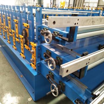 With three sets roll forming rollers, this roll forming machine for roofing sheet can totally produce three metal roof designs, one layer one design, but three profile designs share PLC control system, driving motor and hydraulic system, so three layers can not work on the same time. There is clutch for changing different layers work according to actual processing task.